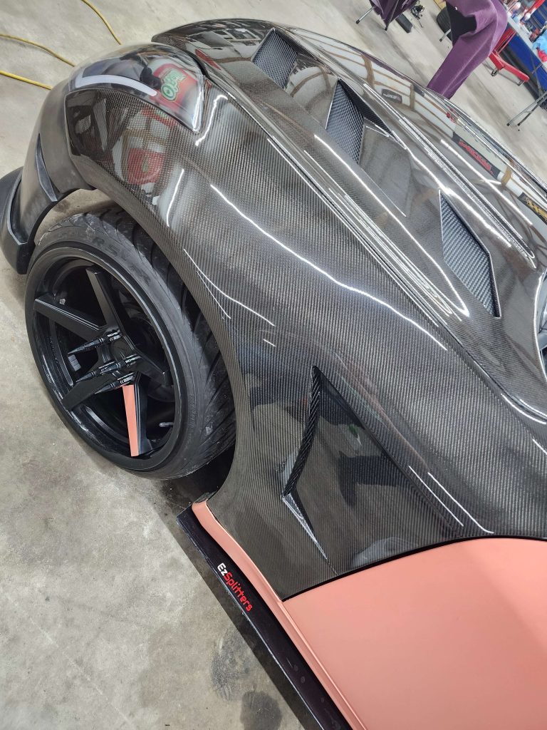 Most carbon fiber that you will encounter isn’t purely carbon fiber. Typically, carbon fibers are used to reinforce polymers that results in a light, but strong and stiff material that lends itself well to automotive purposes. OEM and aftermarket carbon fiber body parts are typically painted with gelcoat or clearcoat.